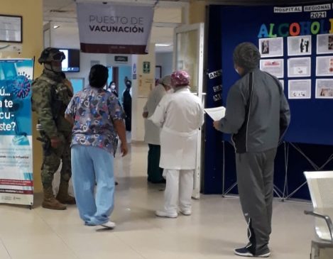 Por la mañana comenzó la aplicación del biológico a personal médico y de enfermería que se encuentran atendiendo los módulos covid en las citadas unidades de salud, donde personal de la Armada de México continúa custodiando los paquetes del biológico.