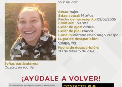 Luego de reportar su desaparición, la Comisión Estatal de Búsqueda emitió la alerta correspondiente y facilita el número telefónico 228 319 3187 para proporcionar información que ayude a su localización.