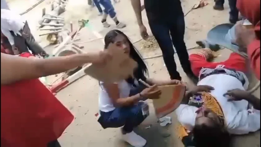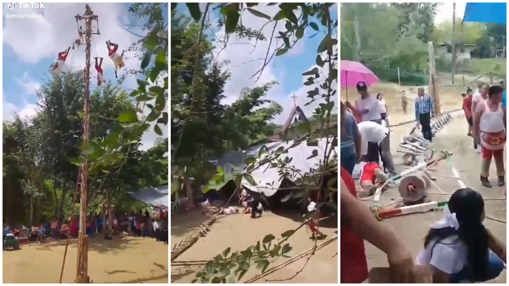 Según se observa en videos publicados en redes sociales por testigos, los danzantes comenzaban a descender del mástil cuando repentinamente se partió en dos. El quiebre inesperado provocó que los participantes cayeran directamente al suelo ante la mirada atónita de los asistentes.