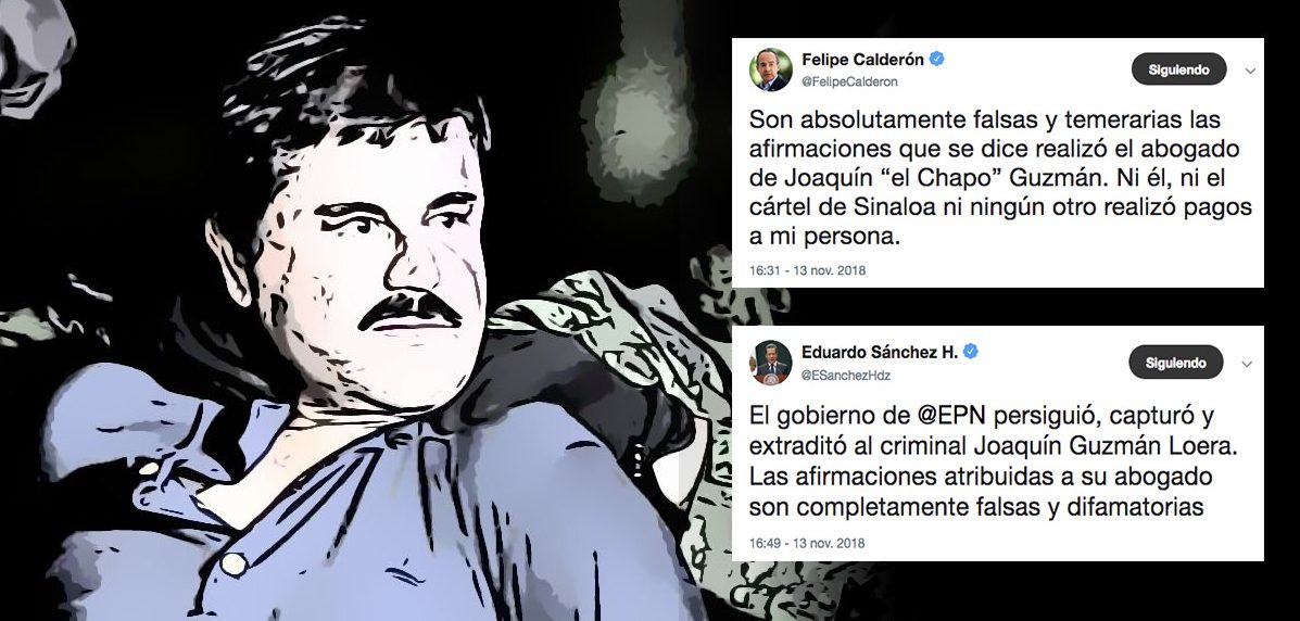 El vocero del gobierno de Peña Nieto, Eduardo Sánchez, desmintió en Twitter los dichos de la defensa del Chapo, alegando que fue precisamente en su administración que se logró reaprehender y extraditar al capo.