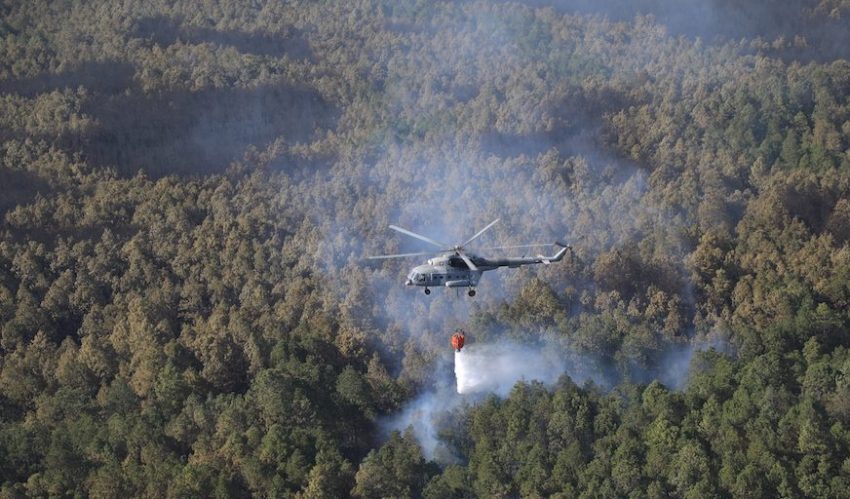 Además, este día, los helicópteros que participan en las maniobras descargaron 229 mil 200 litros en 139 descargas; además de vuelos de valoración y dirección de recursos tácticos sobre la zona de la conflagración.