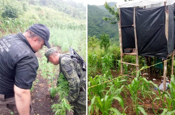 Se recabaron muestras representativas que fueron puestas a disposición del representante público federal, quien continúa con la integración de la carpeta de investigación por un delito contra la salud en la modalidad de siembra y cultivo de marihuana.