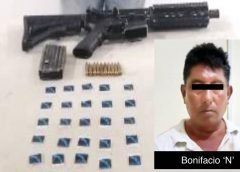 Sayula de Alemán, Ver.- Agentes de la Fuerza Civil detuvieron a Bonifacio “N”, supuesto integrante de un grupo criminal, por presuntos delitos contra la salud, contra la seguridad del tránsito de vehiculos y portación ilegal de arma de fuego, en el municipio de Sayula de Alemán.