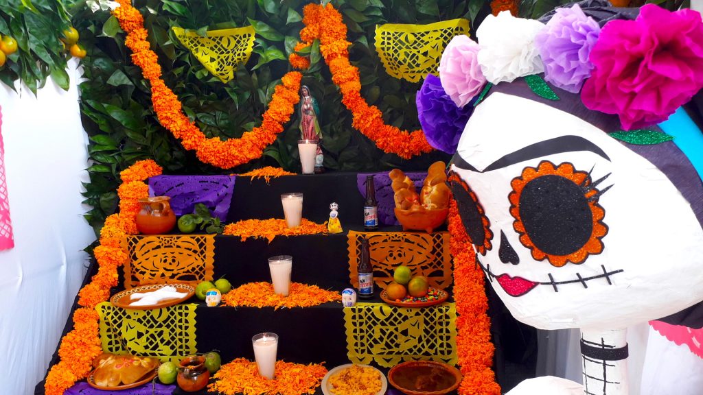 Entre todos resalta uno realizado a la usanza totonaca, suspendido del techo para que las almas que llegan a degustar las ofrendas no toquen nunca el suelo.