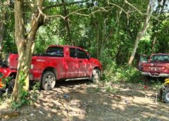 Al inspeccionar la zona, los efectivos hallaron una camioneta KIA en cuyo interior estaba un hombre maniatado y cubierto de la cara, por lo que fue liberado. Metros adelante localizaron ocho vehículos: Toyota Tundra con placas 86555T5, KIA (AB21R06), Toyota Hilux (XL8704A), Ford F-250 (XT42195), Chevrolet 2500 (XT46781), Honda CR-V, Nissan Rogue y Toyota, sin placas, y dos cuatrimotos Honda. Todas las unidades tenían reporte de robo y, al parecer, días antes habían sido utilizadas en el secuestro de dos citricultores de Álamo.