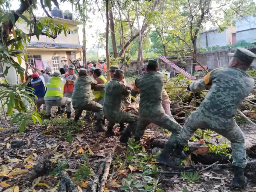 Simultáneamente, el 74/o. Batallón de Infantería se movilizó para realizar labores de auxilio en el Municipio de Tantoyuca, Veracruz. Se reportó la caída de un árbol sobre una vivienda sin pérdidas humanas, además del rescate exitoso de una persona mayor arrastrada por la corriente del arroyo “El Ídolo” en Álamo Temapache.