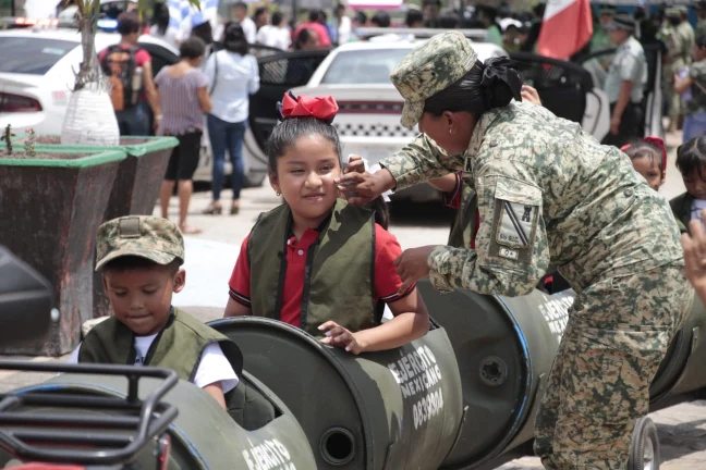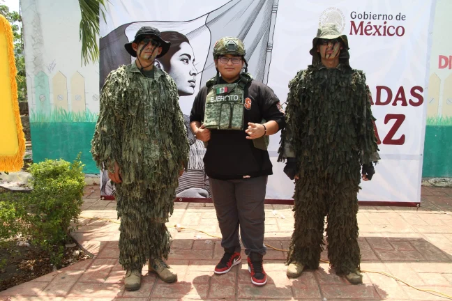 Entre los módulos presentados se incluyeron una exposición fotográfica, equipo militar, uniforme de guillie, módulo de sanidad, de transmisiones, así como actividades lúdicas como pinta caritas y paseos en trenecito para niñas y niños.