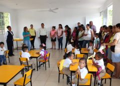 La alcaldesa Patricia Cruz Matheis hizo entrega de un aula para el Centro de Atención Infantil Comunitario (CAIC) de la comunidad Escolín, con el fin de mejorar las condiciones en las que estaban recibiendo clases los pequeños en edad preescolar.