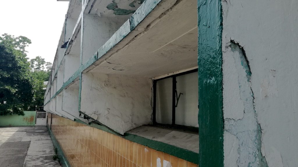 El plantel, con más de 70 años de funcionamiento y que alberga a cuatro secciones en ambos turnos, presenta actualmente serios problemas de humedad que están afectado la estructura. Salitre y trozos de concreto desprendidos dejan al descubierto las varillas de acero.