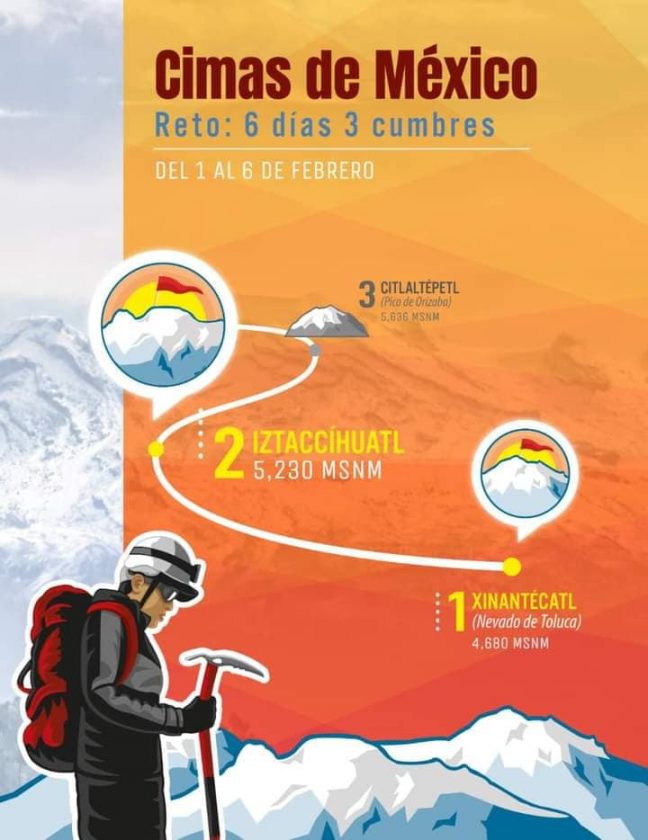 A casi tres meses de haber presentado su proyecto, «Cimas de México», Jair Hernández en 5 días escala y llega a la cima de las tres montañas más altas de nuestro país; Xinántecatl, Iztaccíhuatl y Citlaltépetl.