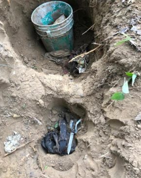 Una denuncia anónima alertó a las autoridades sobre este lugar en el que, supuestamente, había restos humanos, por lo que oficiales se trasladaron al sitio y hallaron fragmentos óseos, prendas de vestir y objetos punzocortantes.