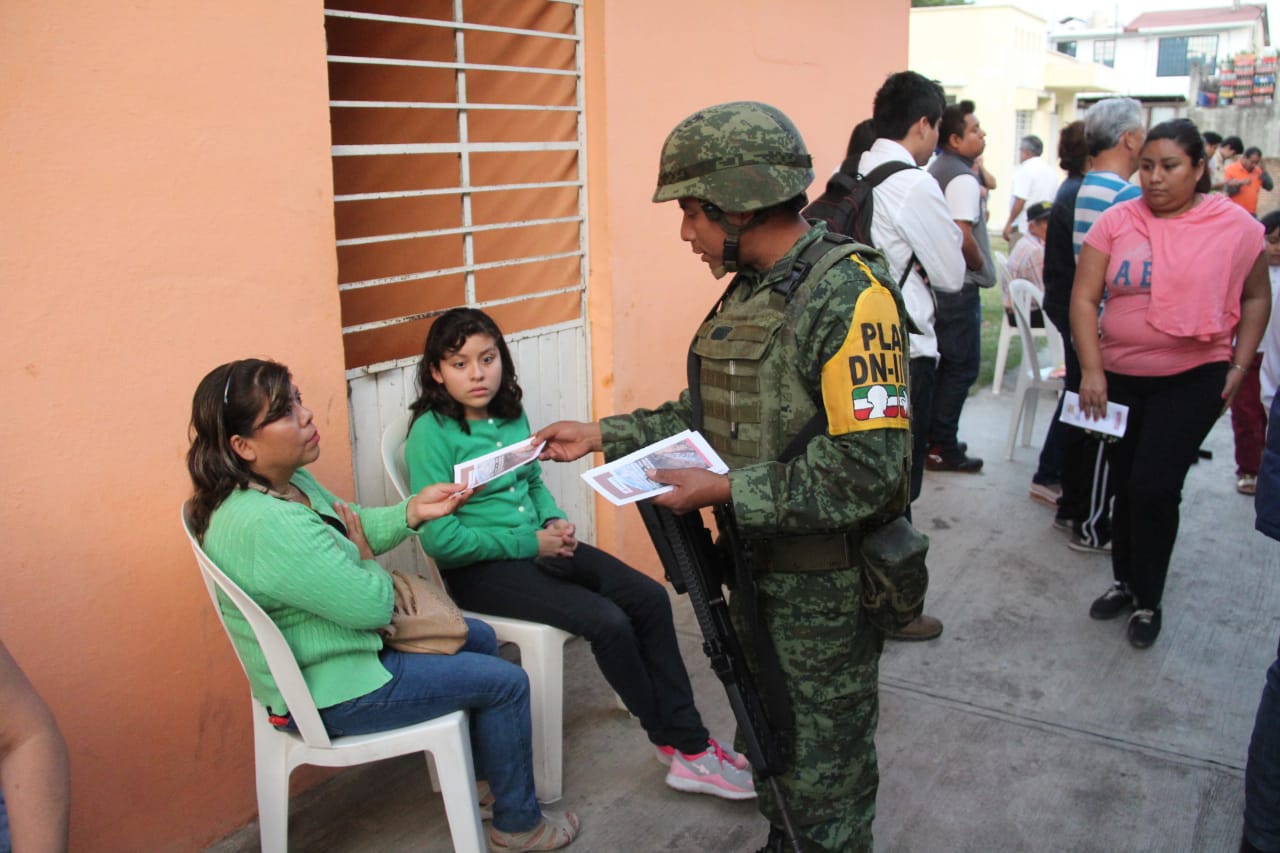 Personal del Ejército Mexicano en coordinación con Policía Federal, Cruz Roja, Protección Civil y autoridades municipales, realizan la difusión del plan de acción en caso de contingencias producto de derrames generados por tomas clandestinas, a fin de evitar que la población se acerque a las zonas siniestradas y ocurran tragedias como la de Tlahuelilpan, el pasado 18 de enero.