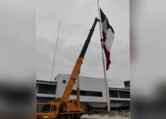 Tuxpan, Ver.- Las fuertes vientos del Norte registrados este jueves provocaron daños a la bandera monumental izada frente al Palacio Municipal en el marco de la conmemoración de la promulgación de la Constitución de 1917, el miércoles.