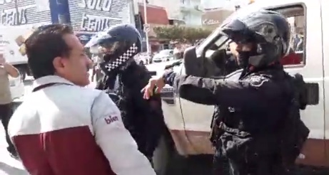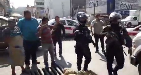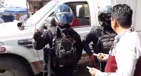 Sin embargo, el orden se rompió cuando dos elementos del Agrupamiento Motorizado de la Policía Estatal se presentaron en el lugar donde se retiraba uno de los puestos semifijos, tratando de impedir que los empleados municipales cumplieran con su comisión.