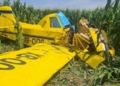 La avioneta de color amarillo, que pertenece a la empresa «Aerofumigaciones La Constancia», impactó con el suelo en una posición normal.
