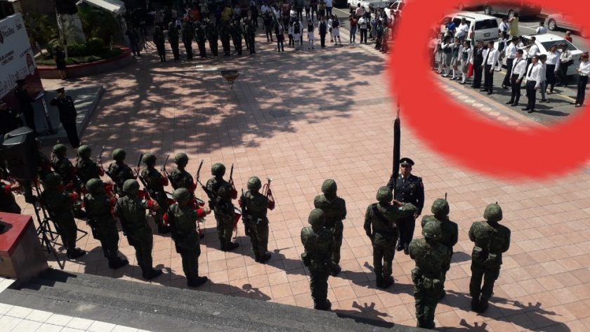 La administración municipal que encabeza Francisco Javier Velazquez Vallejo, quien no se presentó al acto cívico, decidió organizar la ceremonia en punto de las 12:00 horas, cuando el termómetro alcanzó los 30 grados de sensación térmica.