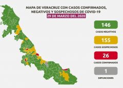 La cifra de positivos es 26: 13 en Boca del Río, cinco en Veracruz, tres en Poza Rica, uno en Ixtaczoquitlán, Fortín, Xalapa, Coatzacoalcos y Tlacotalpan; sobre este último informamos de su fallecimiento por COVID-19. En tanto que permanecen en seguimiento 342 contactos declarados, incluidos los casos positivos.