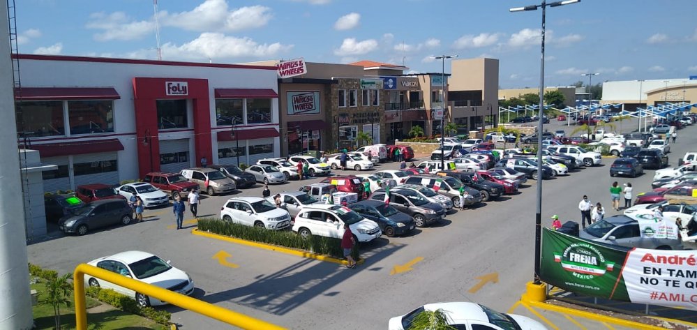 De nueva cuenta en el sur de Tamaulipas se llevó a cabo una caravana de protesta anti AMLO en la que participan mil personas a bordo de 400 vehículos, además de unidades ligeras como motocicletas y bicicletas.