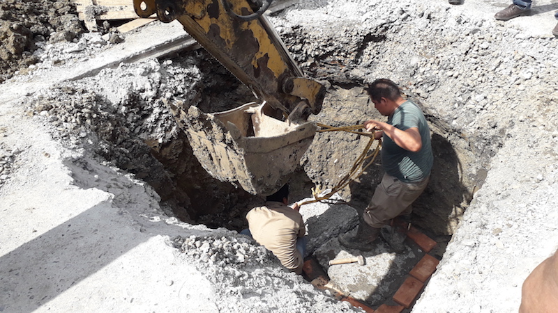 Vecinos de la colonia Tajín reportaron el hundimiento, que no superaba los 50 centímetros de ancho por un metro de largo, pero no fue sino hasta que retiraron el pavimento con ayuda de un martillo hidráulico, que dimensionaron la magnitud del socavón.