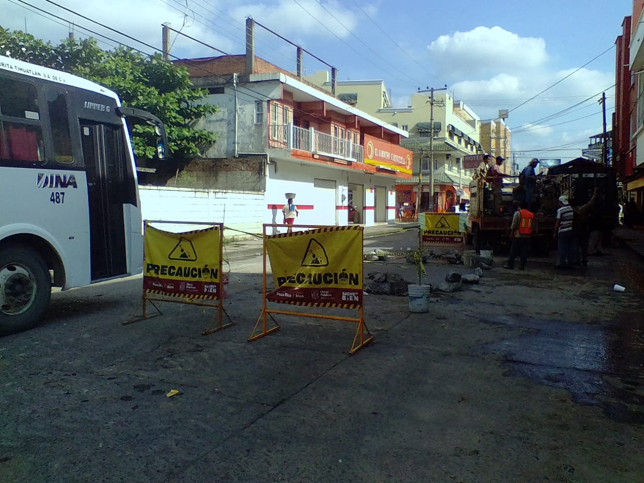 Una vez reparado el drenaje y vertido el concreto, la circulación sobre la calle Bermúdez fue reabierta cerca de las 14:30 horas.