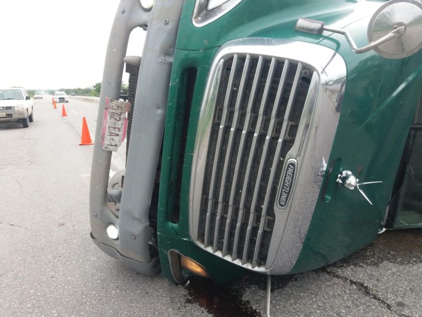 El camión cisterna quedó volcado sovre su costado izquierdo, interrumpiendo parte del tráfico vehciular, por lo que fue necesario que los soldados auxiliaran en el control del paso de las unidades motrices y evitar otro accidente.