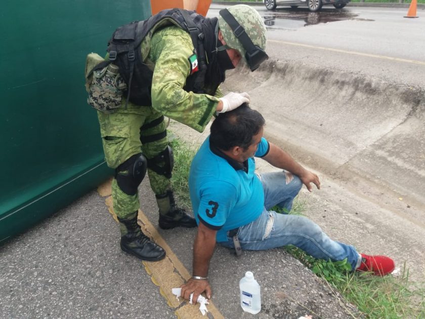 Soldados atienden a conductor accidentado