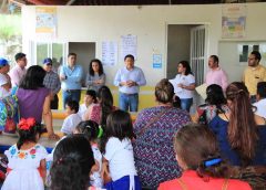 A su arribo, fue recibido por los profesores, alumnos y padres de familia, quienes le externaron la necesidad de construir una barda perimetral y el techado de un aula que se encuentra en obra negra, señalando que estas obras son de gran importancia para la seguridad, el desarrollo y aprendizaje de la comunidad estudiantil.