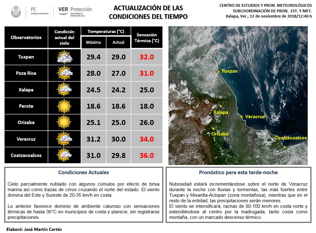 En el comunicado se cita a los municipios de Pueblo Viejo, Tampico Alto, Ozuluama, Tamiahua, Tantima, Tamalín, Naranjos, Tuxpan, Cazones, Gutiérrez Zamora, Papantla, Tecolutla, San Rafael, Nautla, Vega de Alatorre, Alto Lucero, Actopan, Úrsulo Galván, La Antigua, Veracruz, Boca del Río, Alvarado, Lerdo de Tejada, Ángel R. Cabada, San Andrés Tuxtla, Catemaco, Mecayapan, Tatahuicapan, Pajapan, Coatzacoalcos y Agua Dulce.