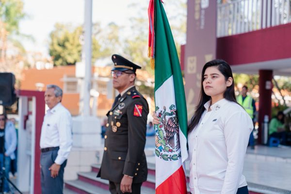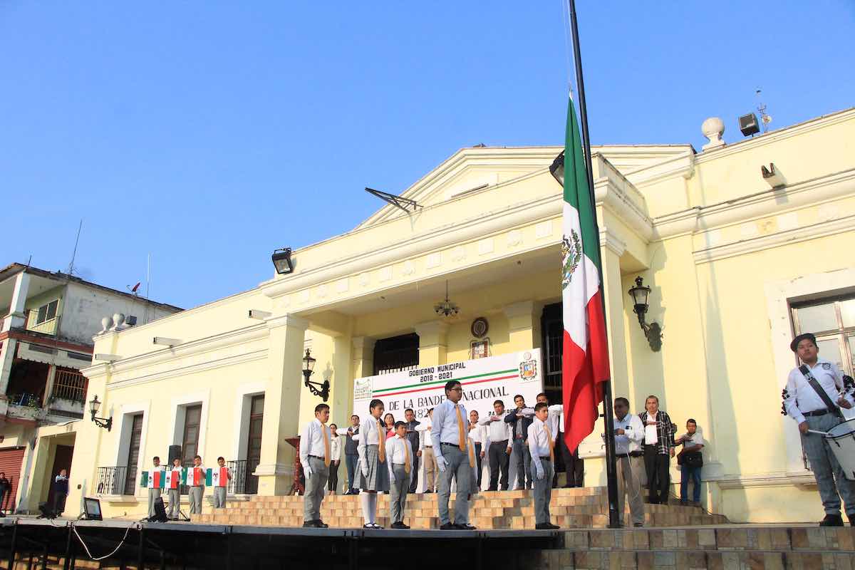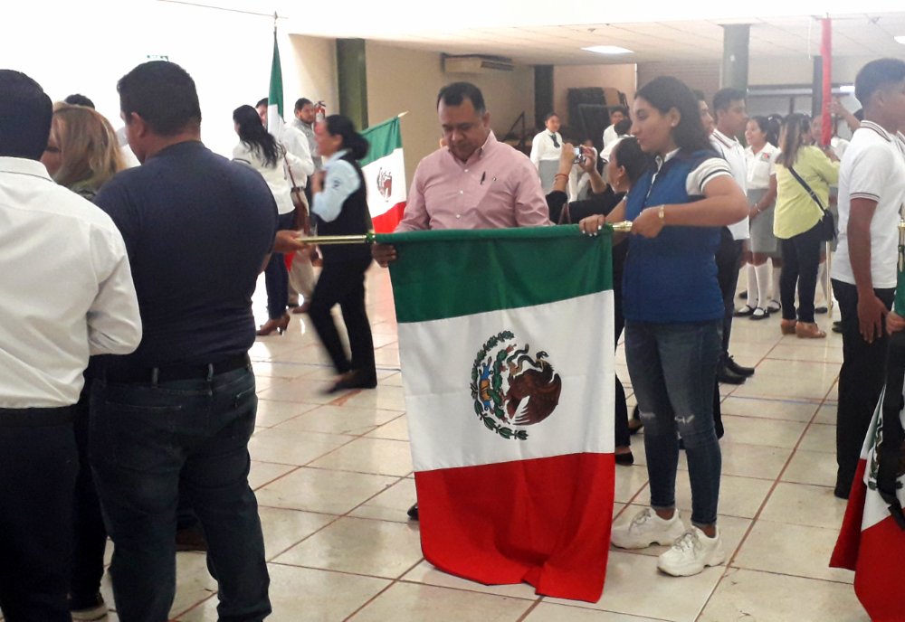 Papantla, Ver.- El Gobierno Municipal que preside el alcalde Mariano Romero González, realizó el acto cívico conmemorativo del Día de la Bandera, ceremonia en la que 15 instituciones educativas recibieron banderas, como parte de los apoyos que la actual administración brinda en su compromiso con la educación.