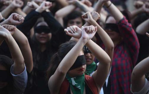 Édgar Escamilla Al grito de “El Estado opresor es un macho violador”, un grupo de jóvenes realizaron el performance “Un violador en tu camino”, la canción chilena que se ha convertido en un himno de la lucha feminista en contra de la violencia de género.