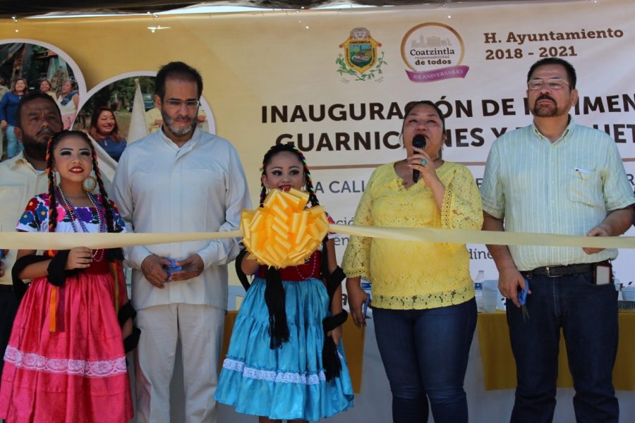 Con la presencia de René Bejarano, la alcaldesa Patricia Cruz Matheis realizó la inaguración de la calle Azucenas, de la colonia Jardines de Coatzintla.