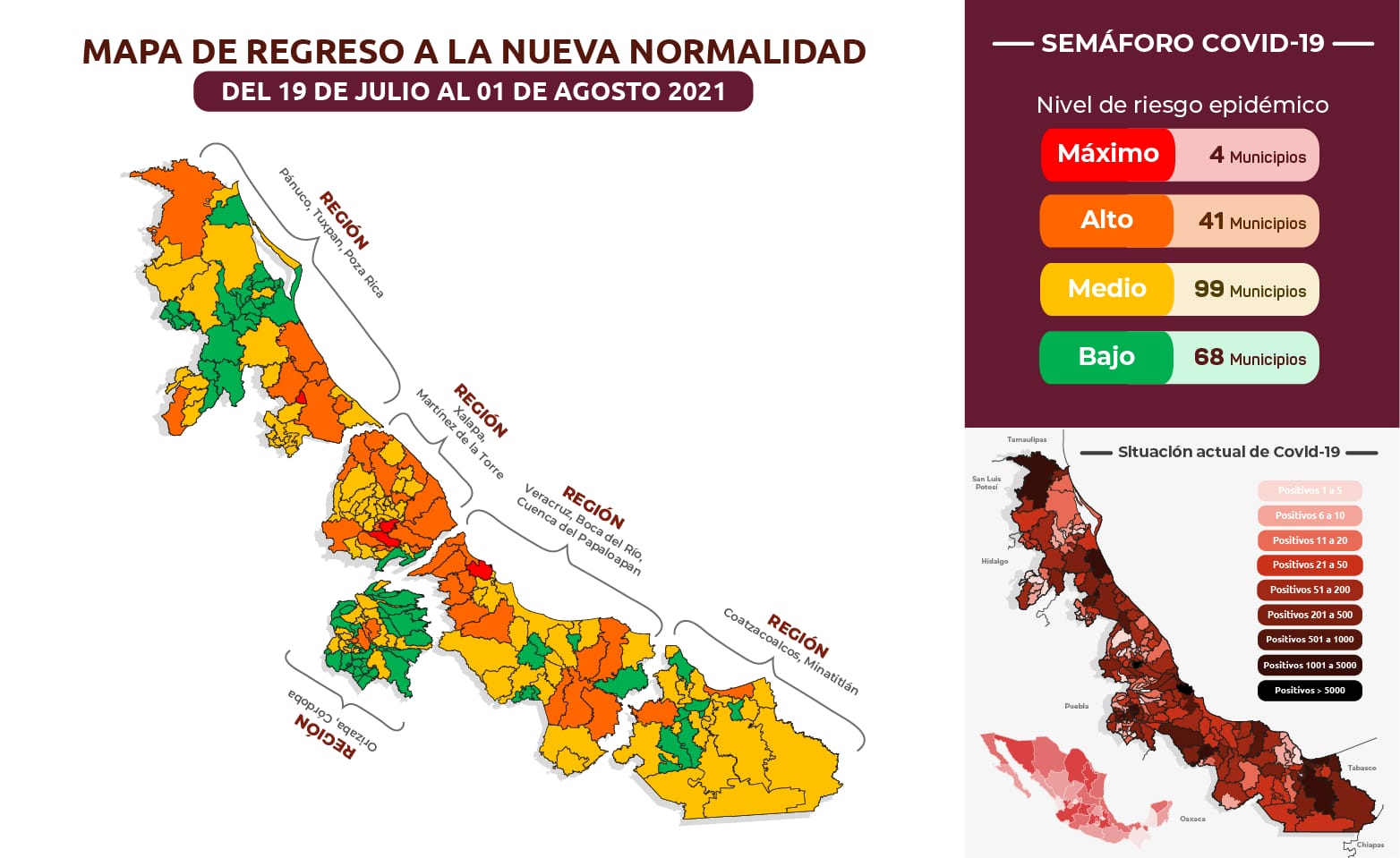 Cuatro municipios veracruzanos vuelven a semáforo rojo