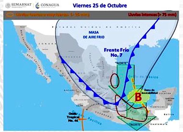 El ingreso del Frente Frío número 7 este viernes 25 de octubre se espera provoque vientos del norte de hasta 80 kilómetros por hora, en los estados de Tamaulipas y Veracruz.